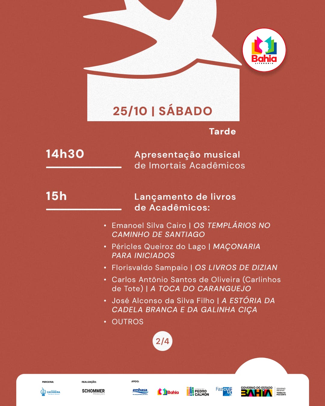 Confira a programação completa da Academia Maçônica Cachoeirana de Letras e Artes e se programe para viver esse encontro.