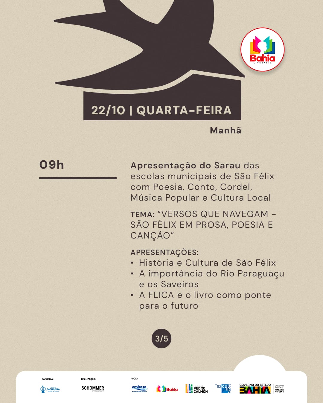 #FLICA2025 #TempoDeLeitura #FlicaEmCachoeira #ProgramaçãoLiterária #FlicaVaiSerMassa #Schommer #GovernodoEstadodaBahia #SecultBA #FPC #BahiaLiterária #LDM #PrefeituraDeCachoeira #GovernoFederal #Embasa