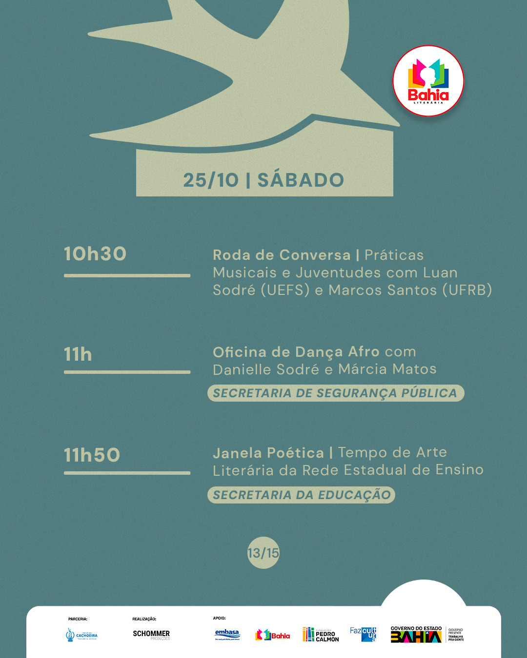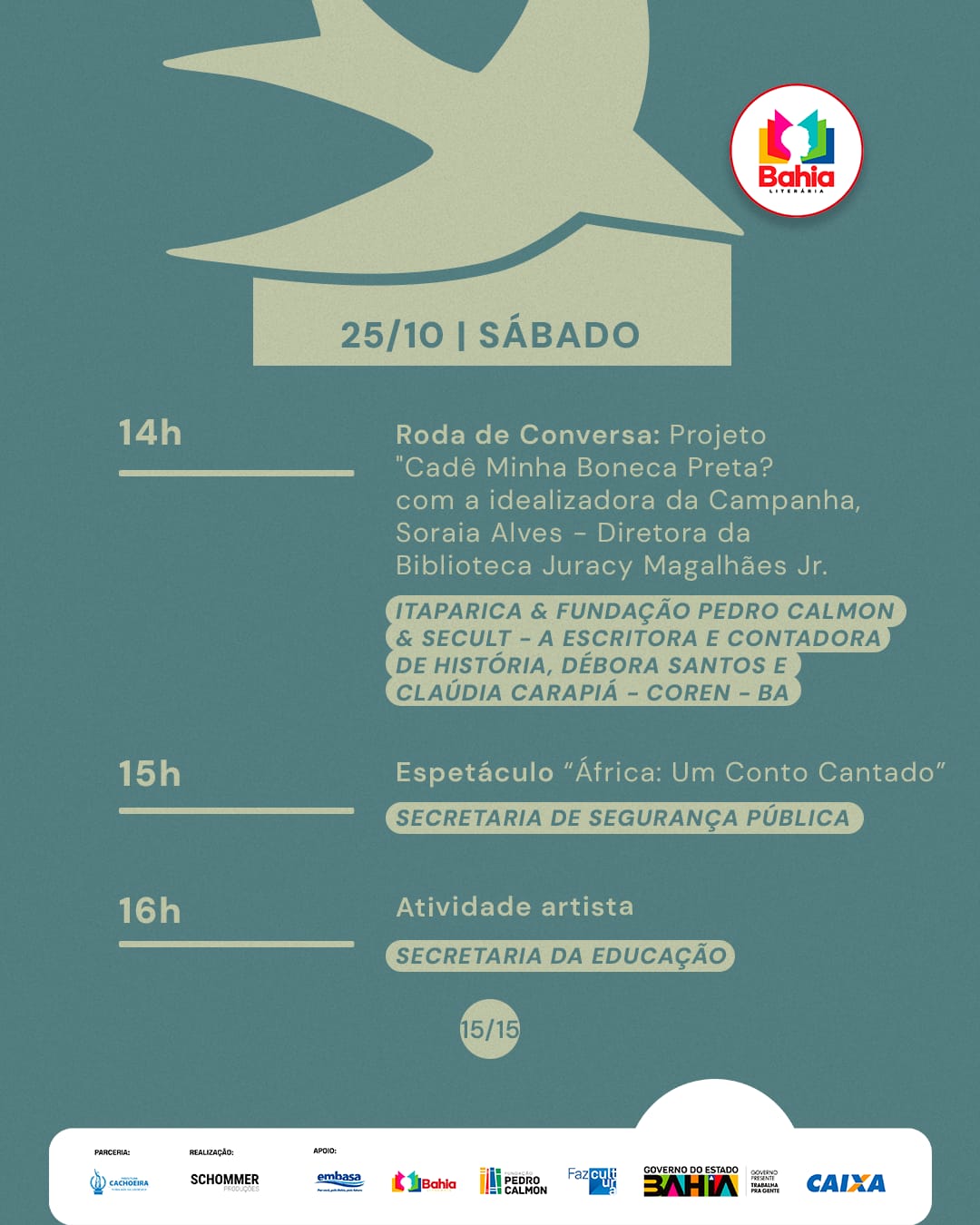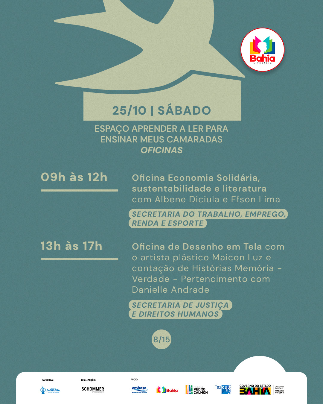 #FLICA2025 #TempoDeLeitura #FlicaEmCachoeira #ProgramaçãoLiterária #FlicaVaiSerMassa #Schommer #GovernodoEstadodaBahia #SecultBA #FPC #BahiaLiterária #LDM #PrefeituraDeCachoeira #Caixa #GovernoFederal #Embasa