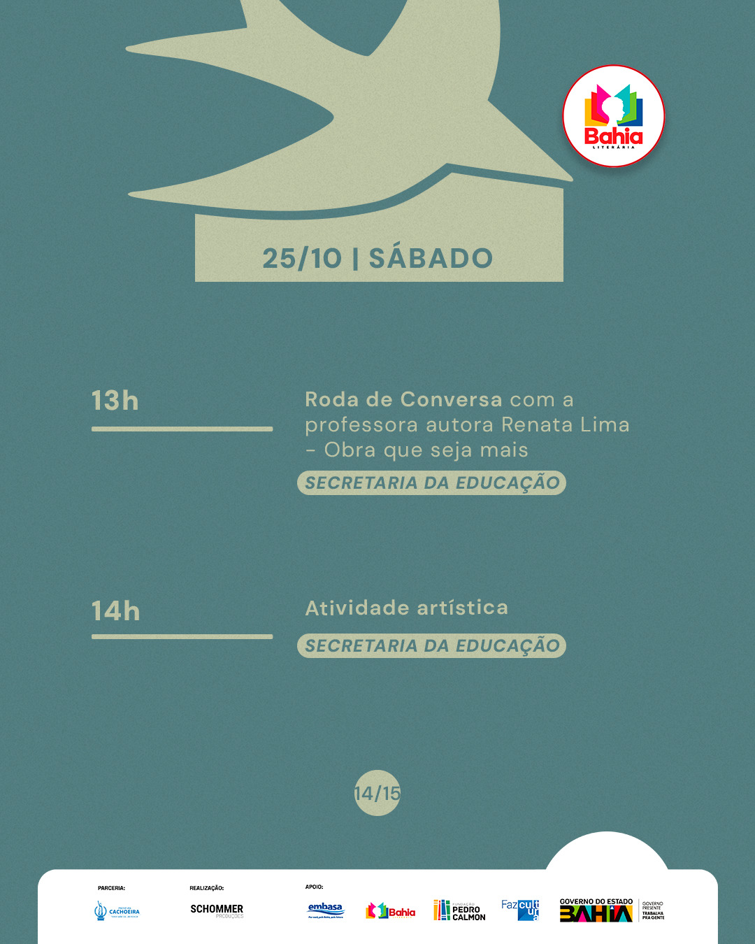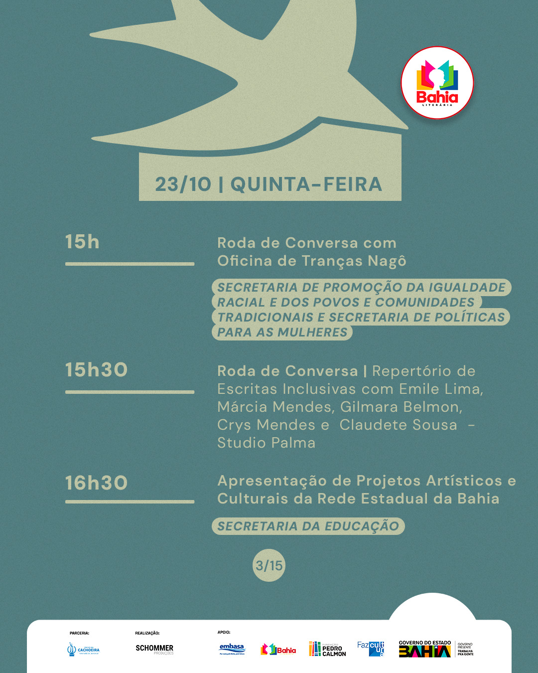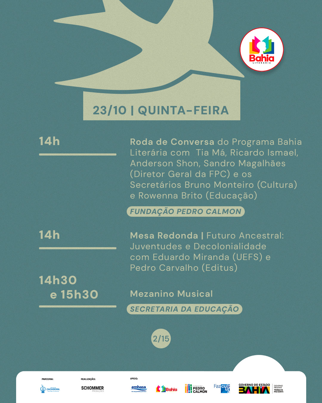 #FLICA2025 #TempoDeLeitura #FlicaEmCachoeira #ProgramaçãoLiterária #FlicaVaiSerMassa #Schommer #GovernodoEstadodaBahia #SecultBA #FPC #BahiaLiterária #LDM #PrefeituraDeCachoeira #Caixa #GovernoFederal #Embasa