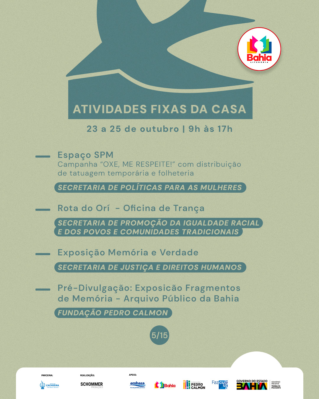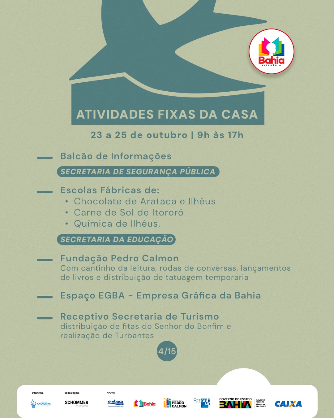 E o Espaço Bahia Presente, do Governo da Bahia, chega à nossa festa com uma programação diversa e viva: do livro à música, da arte à identidade.
