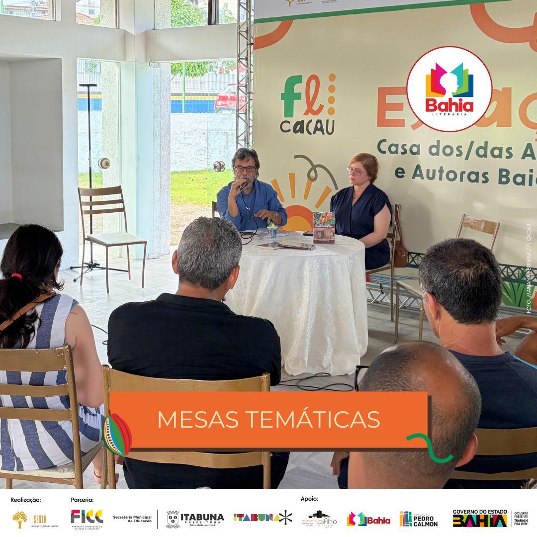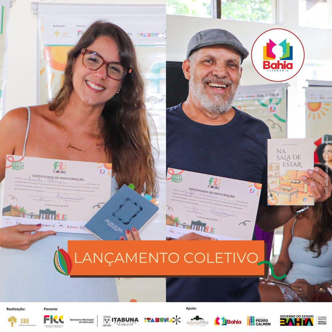 A programação contou ainda com a participação de instituições que fortalecem a cena literária regional: a Academia de Letras de Itabuna (ALITA), a Academia Grapiúna de Letras (AGRAL) e a Academia de Letras de Ilhéus (ALI), somando vozes, trajetórias e saberes ao evento.
